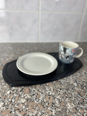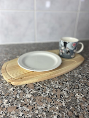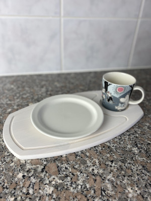 Aamiaistarjotin on kevyt ja näppärän kokoinen sohvan käsinojalle, syliin tai vaikka pihalle kannettavaksi.