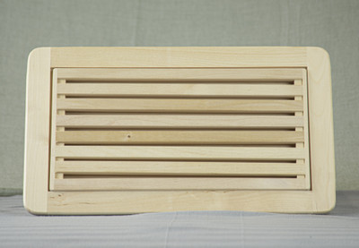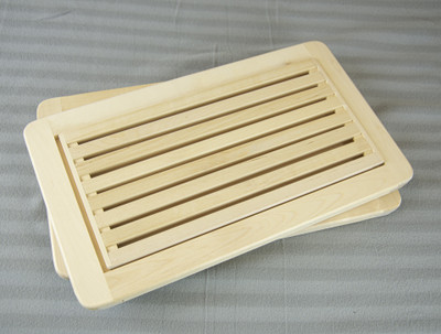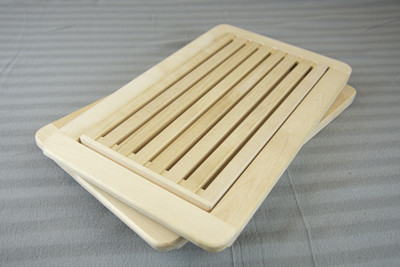 Turun vankilassa valmistettu laadukas ja kestävä leikkuulauta irrotettavalla mururitilällä tekee murusten siivoamisesta helppoa.