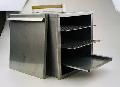 Ruostumattomasta teräksestä valmistettu savustuslaatikko (kahdella ritilällä ja rasvapellillä) soveltuu käytettäväksi yhdessä Sukevan vankilan valmistaman perinteisen ja 8-kulmaisen tulipesän kanssa.