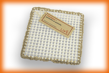 Vääntöapu purkeille ja pulloille. Valmistettu käsityönä, pellavasta ja muoviverkosta. Auttaa avaamaan tiukalla olevia korkkeja ja kansia.